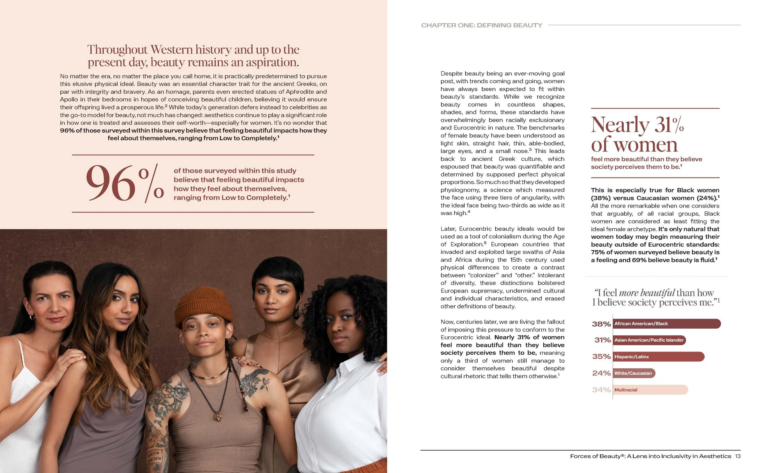 What is DREAM® ? DREAM® (Driving Racial Equity in Aesthetic Medicine) is a comprehensive initiative created by Allergan Aesthetics and skinbetter science®, designed to address effects of systemic racism in aesthetic medicine. The Forces of Beauty® report is the latest component of their program, which aims to further EED&I education within the world of aesthetics and the beauty industry as a whole. This study was sourced from approximately 4,000 women of various racial and ethnic backgrounds. In addition to valuable data, their voices lend firsthand narratives to the larger conversation around representation in beauty marketing.